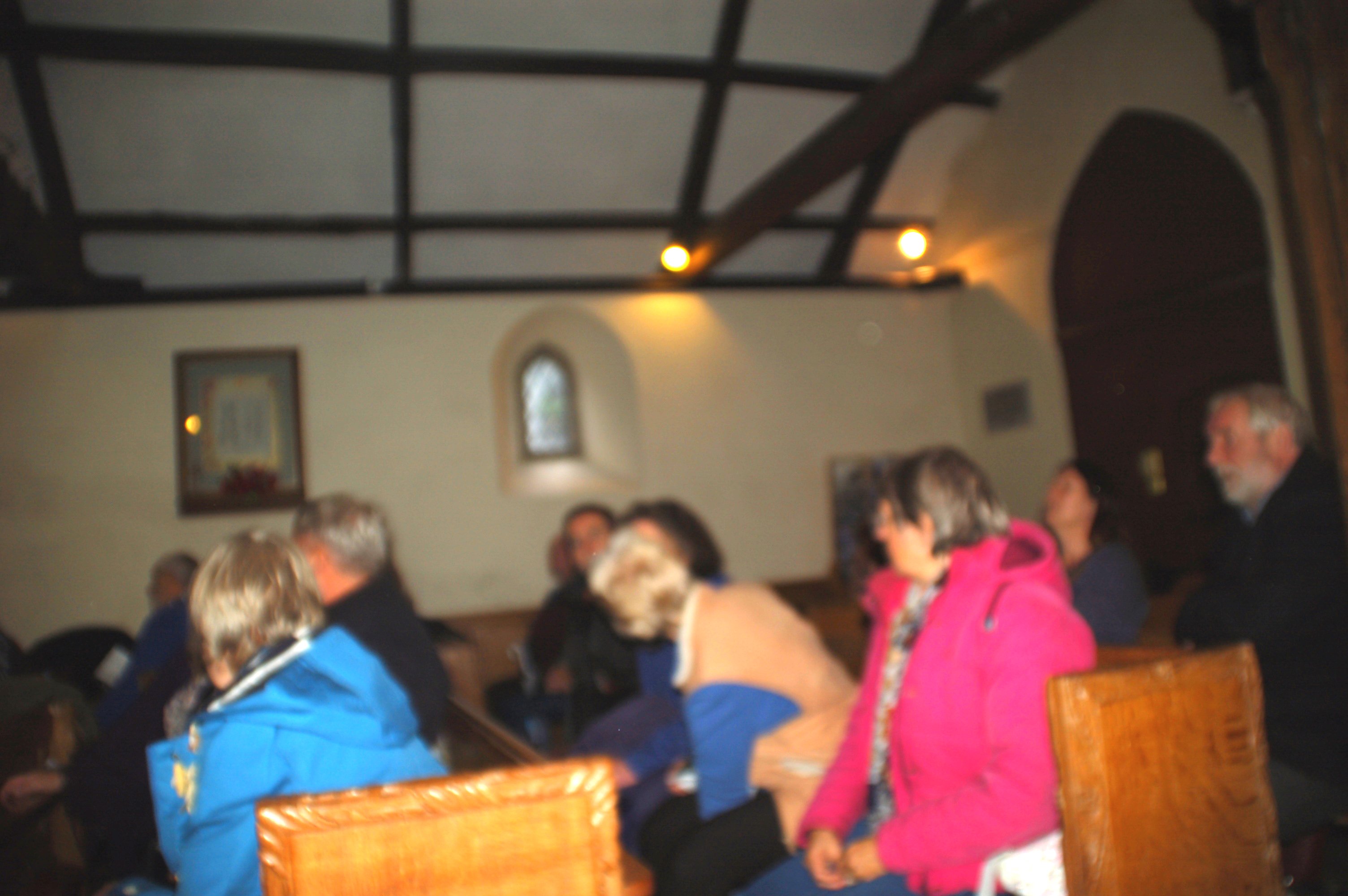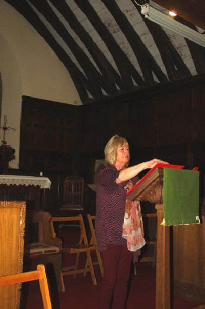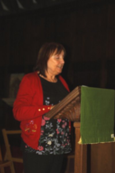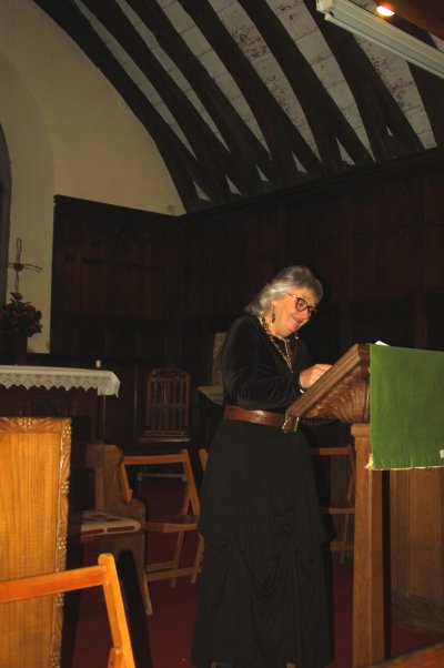 Fourth to take the lectern was our illustrious leader Jean Wills with a ghostly tale entitled "The Widows Walk", stories of sea battles during the first world war and an old house wih a ghost waiting for her husband to return from sea, keeping our listeners on the edges of their pews. Well received and Jean handled the interruptions well, of the door at the back of the church as it went through a very busy period of comings and goings.